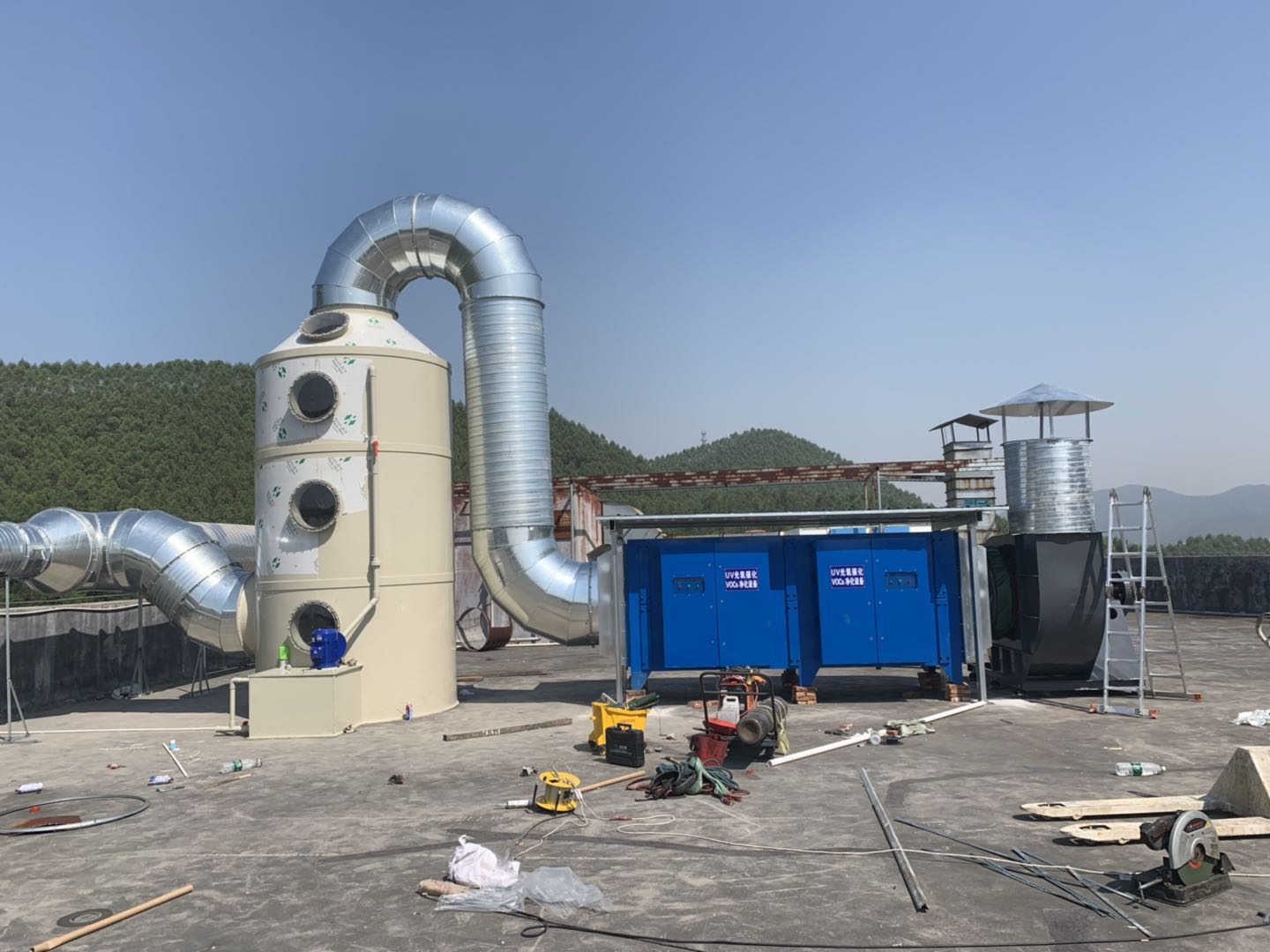 项目对原有的底漆房与灌浆房生产过程中产生的废气进行收集处理。新增一套治理“喷淋塔+UV光解设备二级装置”,让灌浆房与底漆房产生的有机废气统一治理。